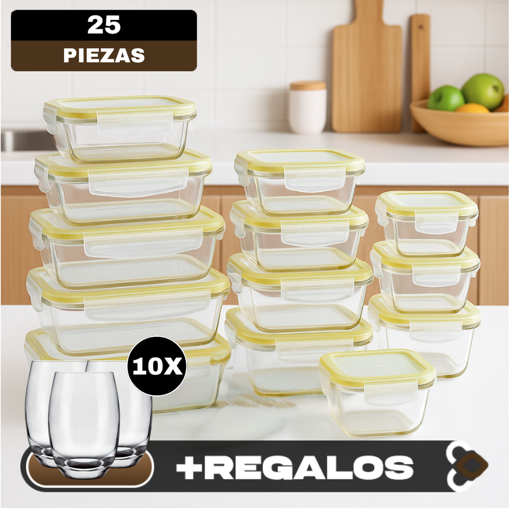 Vidrio de alta calidad: resistente y duradero, ideal para mantener tus alimentos frescos y seguros.