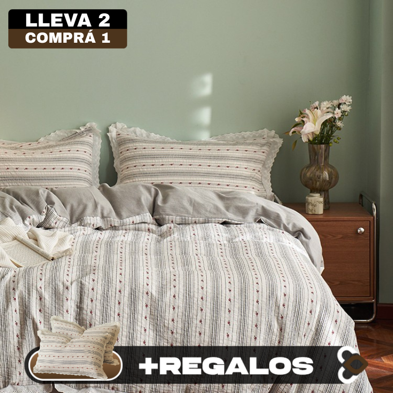 Se lava fácil, seca rápido y casi no necesita plancha. Mantiene la cama fresca, con sensación de hotel boutique, pero versión realista para el día a día. Perfecta para tus noches tranquilas y mañanas sin apuro.